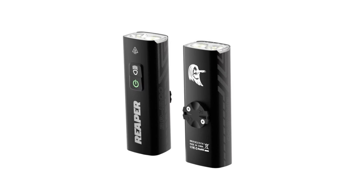 The Ghost Reaper front light from the BC brand Reaper Lights is their new 'commuter' light. With its lightweight CNC machined aluminum body, these units offer up to 1200 lumens, and up to 29 hours of runtime on a full charge. With 8 different lighting modes and two GOPRO-compatible mounts, the simplicity of the Ghost Reaper 1200-lumen Commuter Light makes it essential for city commuting and has enough power for real night riding on trails or under lit streets.